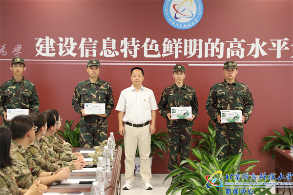王传亮、王文杰、肖志松分别向学院副书记代表、辅导员代表和学生教官代表发放军训慰问品。(供稿/编辑:党委宣传部 李萌 图片:苗剑飞 学生融媒体工作室 李济垚 孔骁涵 审核:杨静)
