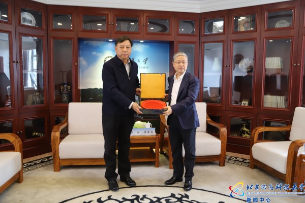 在鄂调研的第二站是武汉大学。在武汉大学,该校党委书记黄泰岩、副校长龚威等领导热情接待了郭福校长一行。黄泰岩介绍了武汉大学的建设发展情况,并对北京信息科技大学近年取得的成绩表示赞赏,希望双方在未来能够更多地在人才培养、科技创新等方面加强联动、深化合作,促进共赢。郭福介绍了学校的历史概况以及人才培养、科学研究、社会服务等方面的发展情况。他表示,近年来两校不断加强沟通对接,促进交流合作,增进了彼此的友谊,期盼通过探索深入合作的方式路径,开展高水平、深层次、多方位的合作共建,为服务国家以及区域战略发展提供支撑和新动能。也真诚地希望武汉大学能够更多地支持和帮助北京信息科技大学的建设发展。在武汉大学,郭福一行还参观了位于尖端科技楼的科研公共服务条件平台,实地调研学习高效率的科研资源统筹共享运行机制。