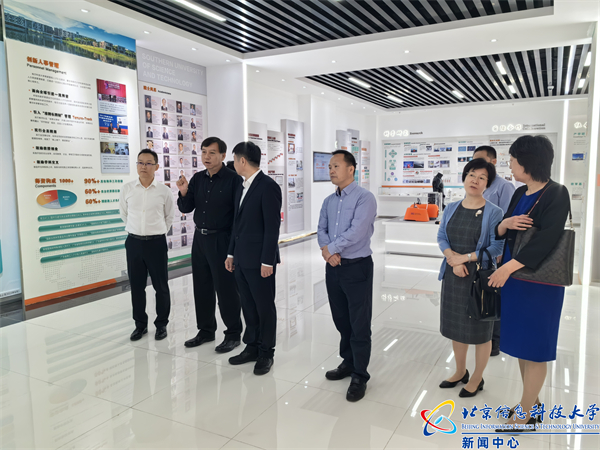在南方科技大学,校党委副书记、校长薛其坤,代理副校长韩晓东热情接待了郭福一行。座谈中,韩晓东重点介绍了学校强化“小而精、国际化、创新型”,建设中国特色新型研究型大学的办学理念以及在培养模式、人事管理、科研制度等方面的创新举措。郭福表示,“南科大速度”令人惊叹,先进的办学理念和现代化治理体系非常值得学习,南科大实施的“三制三化”(以学分制、导师制、书院制为基础,以人才培养的个性化、精英化、国际化为特色)在培养高水平创新人才方面成效显著,希望通过此次调研,能够进一步深化两校合作,学习借鉴有益经验,助力信息科大强化有组织科研、全面提高人才培养质量,深化人事管理体制机制改革,推动学校快速发展。