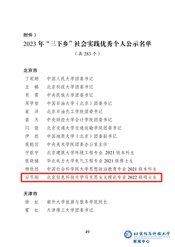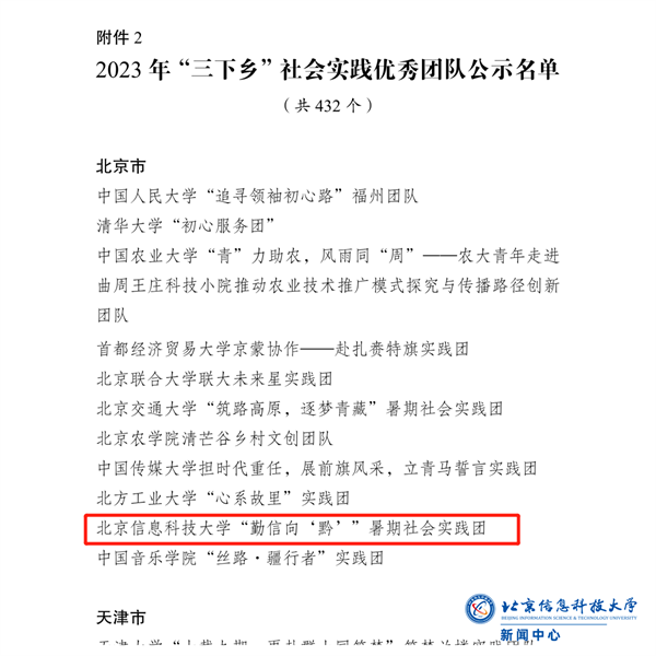 北京信息科技大学“勤信向‘黔’”暑期实践团荣获“三下乡”社会实践优秀团队,马克思主义学院研究生应尽刚荣获“三下乡”社会实践优秀个人。