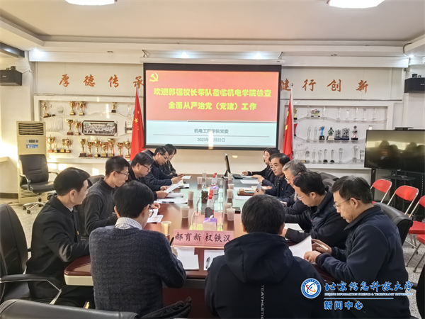 郭福带队检查了机电工程学院全面从严治党主体责任情况。他强调,学院党委要充分发挥全面从严治党政治引领保障作用,把学校党的建设各项工作落实落细;要充分认识全面从严治党工作的复杂性、严峻性,切实抓好师生思想政治工作,着力健全“一把手”抓“第一资源”的工作机制,加强对骨干教师的政治引领和政治吸纳,引领人才在聚焦党和国家发展事业的重大任务和重点项目上持续发力;要牢固树立高质量党建引领高质量发展的行动自觉,在科研工作提质增效、加强国家级和北京市一流本科专业建设和提升人才培养质量方面谋篇布局、稳步推进。