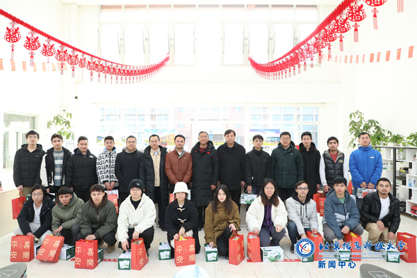 由于学业科研、就业实习等原因,今年共有317名学生选择留校过年。解江凌、郭福一行来到学三公寓,亲切慰问留校学生,为同学们带去了新春祝福和新年礼包,对同学们为学校发展做出的支持与贡献表达由衷的感谢。他们仔细询问学生假期学习生活安排,了解大家在校生活情况,勉励同学们要科学规划假期生活,利用假期时间做好学习科研工作,同时劳逸结合,加强体育锻炼。还叮嘱同学们春节期间要多与家人、亲友联系,注意假期安全,度过一个平安、欢乐、充实的新春假期。