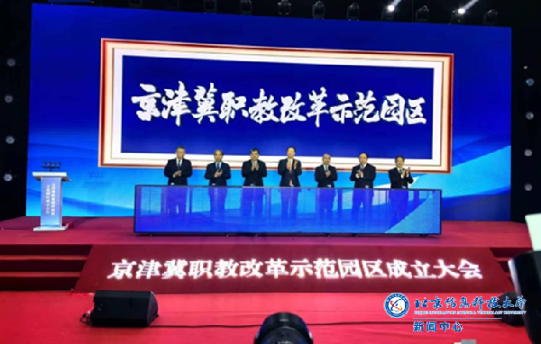 会上,北京市教委主任李奕宣读了成立京津冀职业教育改革示范园区的通知。京津冀三地教育行政部⻔签署固安职教改革示范园共建协议。三省市政府领导为职教园区揭牌。
