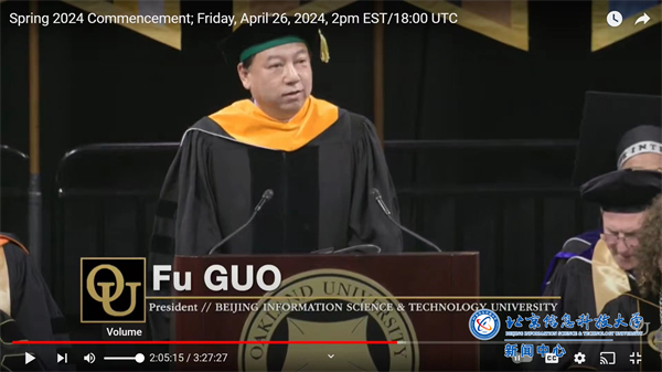 在奥克兰大学,郭福校长作为唯一受邀嘉宾在学校春季本科生毕业典礼上发表致辞,奥克兰大学校长奥拉·赫希·佩斯科维茨(Ora Hirsch Pescovitz)主持典礼。