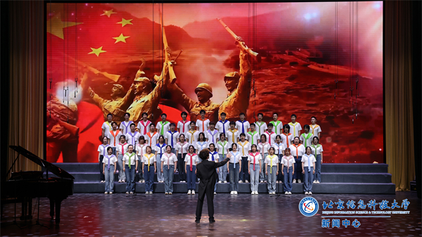 校合唱团带来歌曲《我们都是雷锋》《领航》,传达出信息科大青年学子无私奉献、砥砺前行,在伟大中国共产党的领航下乘风破浪的坚定信仰。