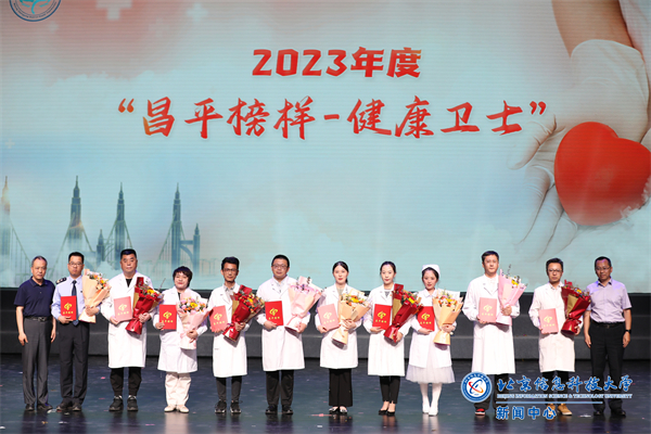 北京信息科技大学校党委常委、副校长叶向忠,昌平区总工会党组书记、常务副主席王冰为2023年度“昌平榜样——健康卫士颁奖”。