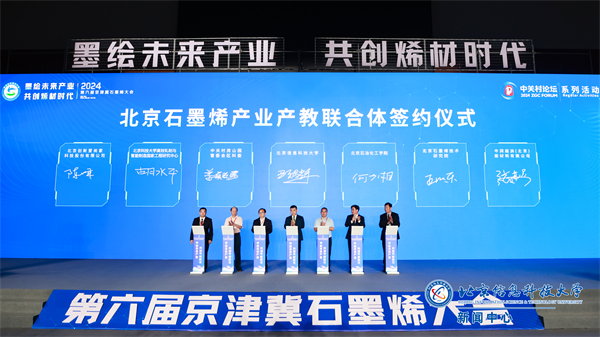 会上,学校作为牵头单位,与中关村房山园管委会、房山区科委、北京石油化工学院、北京科技大学、北京石墨烯技术研究院、北京创新爱尚家科技股份有限公司、中润超油(北京)新材料有限公司共同签署了北京石墨烯产业产教联合体合作协议。