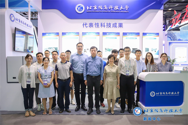 在展位上,于英杰十分关心学校的科技成果转化工作,分别听取了仪器科学与光电工程学院院长董明利教授、副院长尤睿教授,机电学院孙江宏教授关于锑化物二类超晶格红外探测器系列及集成系统、面向呼气检测的质谱仪/电子鼻协同无创诊断平台、智慧3D图书扫描机器人等项目的科研和产业化情况汇报。于英杰指出,北京信息科技大学面向国家重大需求筑牢科研基础,抢抓科技发展趋势开展前沿研究,围绕业务需求痛点开展应用研发,在科研和成果转化方面取得了可喜的成绩,未来要继续推进校城融合、产教融汇,促进科技成果在京落地转化,为北京科创中心建设做出更大贡献。