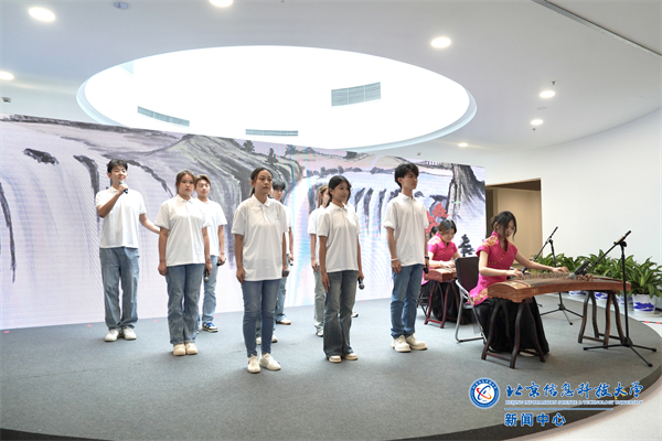 现场还表演了古筝伴奏诵读《勤耕书海 信步智途》。古筝音律悠扬婉转,学生朗诵声情并茂。他们在对图书馆的赞颂中深切表示,将以新图书馆的启用为新开端,努力向着知识的星辰大海扬帆起航、逐梦远方!