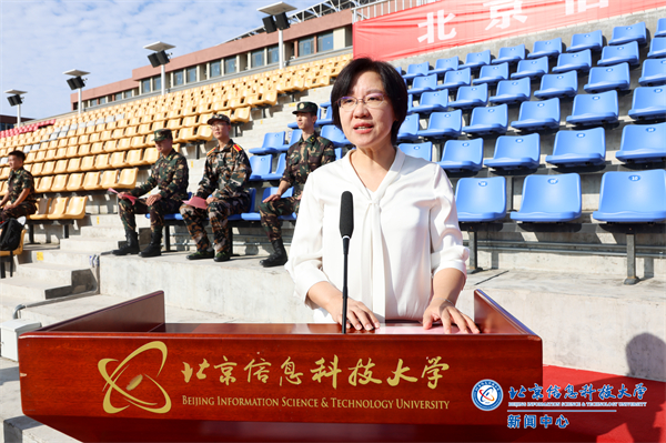 校党委常委、副校长王兴芬宣读北京信息科技大学2024级学生军训团成员名单。