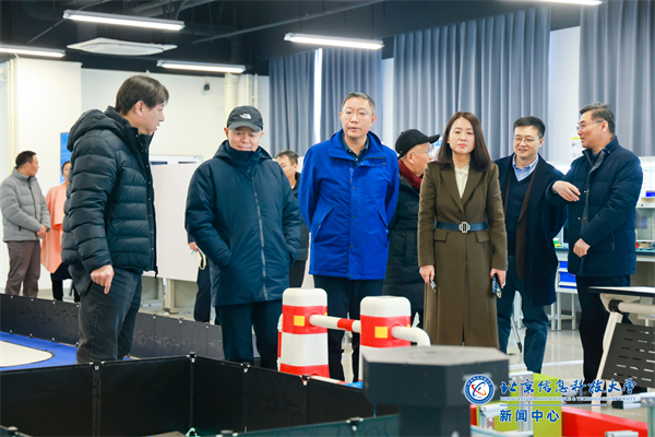王江平一行还观看了立德楼沙河校区沙盘,参观了学校科研成果展、国家级创新创业实践基地、人工智能机器人展示等。