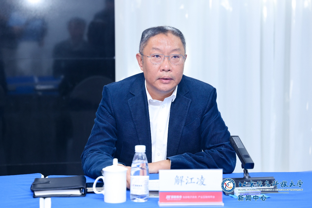 王少峰对解江凌带队到访表示热烈欢迎,对信息科大与国联股份共建“数智赋能产教融合协同创新中心”表示衷心祝贺,并感谢信息科大与国联股份将这一重要的校企合作平台落户丰台区。他指出,当前丰台区正着力推进城市功能优化与产业转型升级,重点发展的智能制造、数字经济等产业方向,与北京信息科技大学优势学科群高度契合。王少峰表示,此次校企合作平台的落地,标志着政校企协同发展迈出实质性步伐,既为校地资源高效融合搭建了平台,又将通过协同创新中心建设,探索产教融合的新范式。他期待校企双方以此次合作签约为契机,聚焦技术攻关、成果转化、人才共育等重点领域,形成可复制推广的产教融合示范成果。