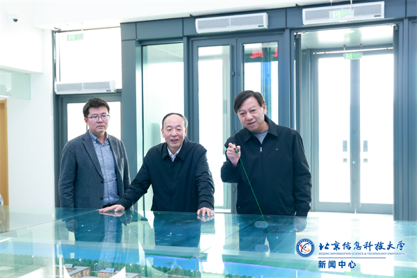 学术报告后,赵春江参观了学校科研成果展,了解了学校科研成果转化情况,并前往自动化学院(人工智能学院)与相关负责人围绕人工智能学院建设有关事宜进行研讨。活动前,赵春江还观看了学校沙河校区沙盘,详细了解了学校新校区建设规划情况。