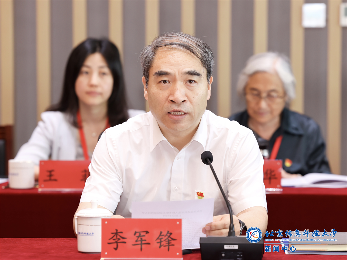 李军锋首先介绍了北京市党建和思想政治工作先进普通高等学校评选表彰工作的背景和重要意义,以及本次入校考察的流程和方式。他强调,该奖项是市委抓高校党建工作的一项优良传统和重要品牌,对推动高校构建高质量党建工作体系、以高质量党建引领高质量发展具有深远意义。李军锋指出,入校考察是评选的关键环节,考察组将重点了解学校党建和思想政治工作的先进经验,存在的问题和不足,并汇总形成综合考察意见。他希望北京信息科技大学以此次考察为契机,进一步提升党建和思政工作水平,为首都高等教育发展、服务国家战略需求作出更大贡献。