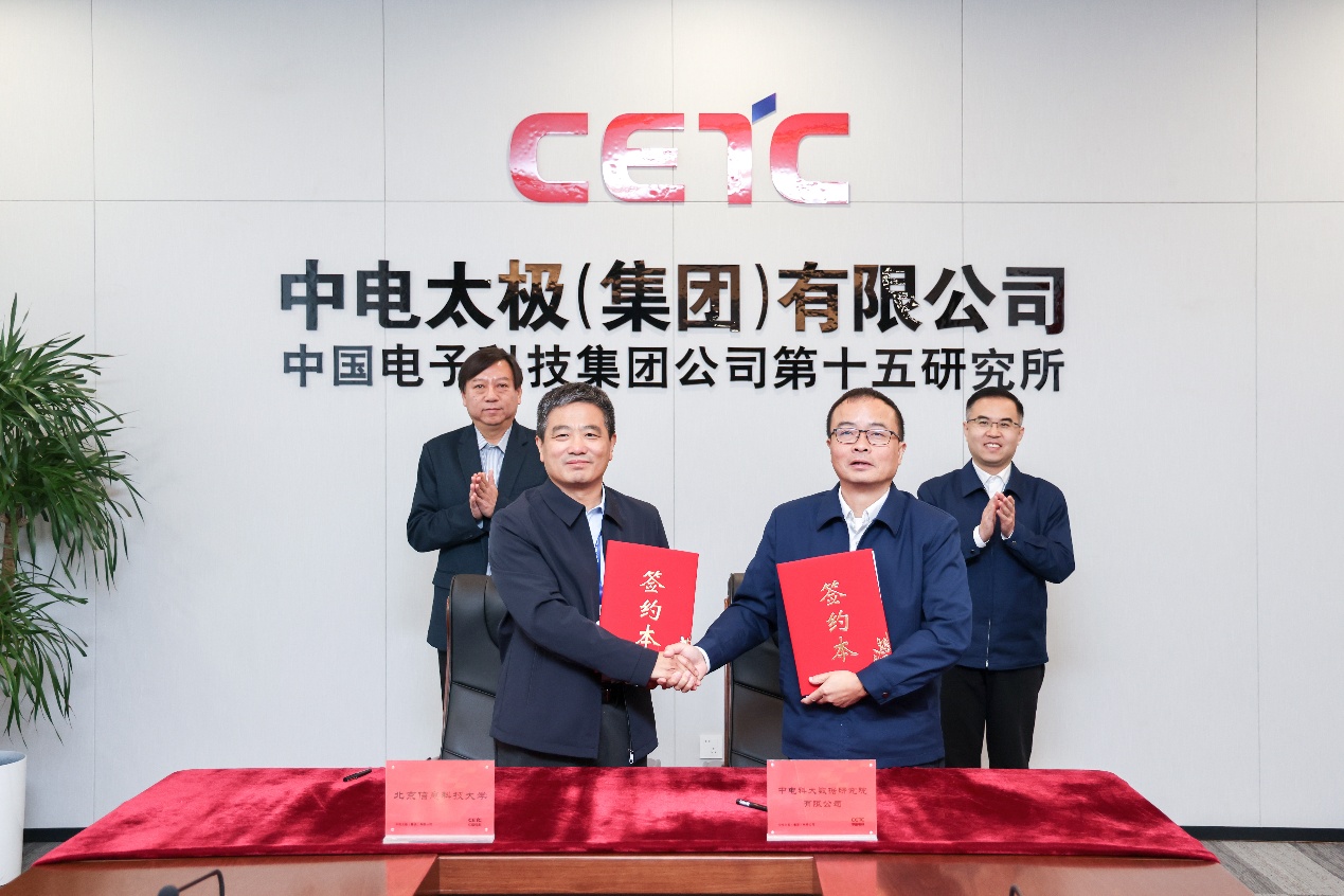 11月5日,学校与中电科大数据研究院有限公司签约仪式在中电太极(集团)有限公司举行。校党委副书记、校长郭福,副校长张健,中电太极(集团)总经理孙亭,副总经理秦廷辉(大数据国家工程研究中心主任)出席仪式。中电科大数据研究院有限公司常务副总经理(大数据国家工程研究中心副主任)高山主持仪式。