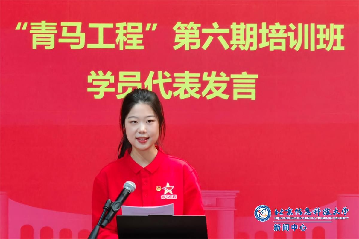 第五期培训班优秀学员代表、计算机学院李耔君同学在发言中谈到,在“青马工程”的培养中,学员们深入学习马克思主义经典著作,赴红色教育基地开展沉浸式学习,积极参与社会实践,努力成为红色基因的传承者、基层服务的践行者与时代发展的实干者。他表示,未来将继续夯实信仰根基、汲取红色力量、锤炼实干本领,坚定不移听党话、跟党走,以实际行动诠释“青马人”的使命担当。
