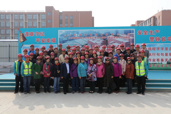 离退休老同志们兴致勃勃地聆听沙盘讲解、乘车浏览新校区,并进入第一教学组团、学生宿舍B组团施工现场参观。作为学校建设发展的参与者、实践者和见证者,有的还是当年的决策者,这些老同志们依然心系学校,看到新校区建设取得突破性进展,兴奋之情溢于言表,欣喜之余还时不时的提出自己关注的问题,“科研楼在哪里?几层?多少平米?”“二期建设什么时候开始?教学科研用房未来是怎么规划的?”……他们对新校区建设、学校未来事业发展充满了自豪和骄傲。