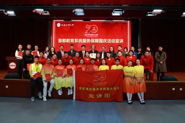 11月8日,由我校10名师生组成的北京信息科技大学国庆精神宣讲团,在校团委书记马绍辉带领下,赴安徽省开展首都教育系统服务保障国庆活动宣讲。8日上午在安徽医科大学进行专场宣讲,下午与中央音乐学院共同在合肥工业大学开展宣讲。中共安徽省委教育工委副书记王佩刚,安徽省教育厅思政处处长林兴德,合肥工业大学党委常委、副校长季益洪,合肥工业大学、安徽医科大学有关部门领导参加了相关活动,合肥工业大学、安徽大学、安徽医科大学等学校学生代表、部分中小学学生代表到场聆听。