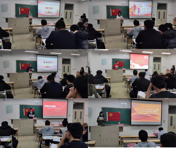 讲座结束后,组织开展了“青春告白祖国”爱国主题教育活动。七个小组代表依次上台发言,就新中国成立70周年经济、文化、生态、社会发展的成就交流自己的感想和体会。