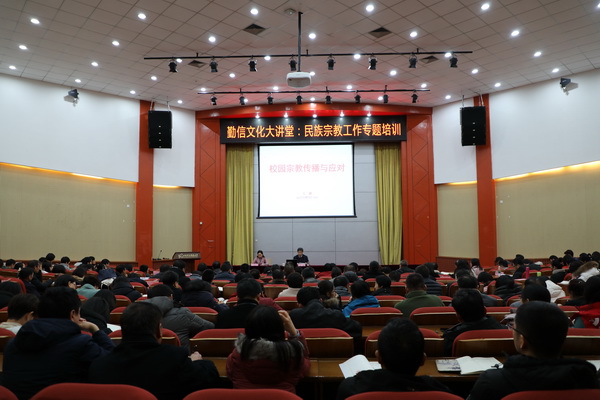 本次培训旨在进一步深入学习贯彻习近平新时代中国特色社会主义思想,宣传和贯彻党的民族宗教政策、中国特色社会主义宗教理论,提高我校干部和教师开展民族工作、宗教工作的素质和能力,为我校更好地做好民族宗教工作,打击非法传教、维护校园安全稳定提供了可操作性和实践性的工作模式和路径。