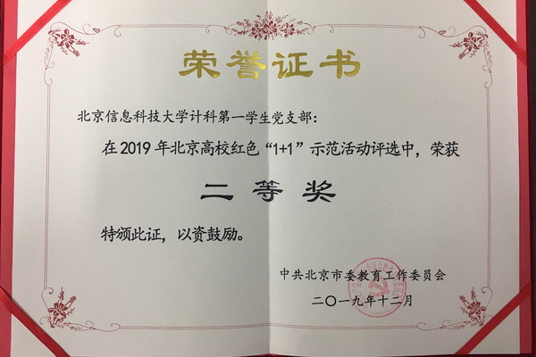 我校计科第一学生党支部荣获2019年北京高校红色“1+1”示范活动二等奖