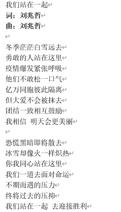 国贸1802支部团员刘兆哲发挥创作才华,写出了抗击疫情主题歌曲《我们站在一起》,在网易云音乐上发布之后受到众多听众的支持和点赞。他说:“灾难面前,大爱无疆。我们要感谢所有为抗击疫情做出贡献的人!音乐在这时的作用应该是凝聚信念,对在一线的人高呼一声:别怕,我们站在一起!”