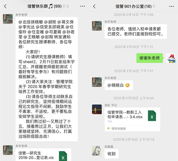 学院党委副书记和各位辅导员从1月23日起,统计每位学生的相关信息,并将学校相关通知逐一告知学生,对前往湖北旅居以及近两周与来自湖北地区人员有密切接触的师生进行了全面系统摸排,对在鄂、留校学生等四类师生制定“一生一册”工作方案。学院辅导员颜婷婷老师舍下家中未满周岁的女儿,从1月29日到2月2日(大年初五到初九)连续五天坚守在学院值班,实时关注抗疫信息和学生动态,这份坚守与奉献值得党员同志们学习。