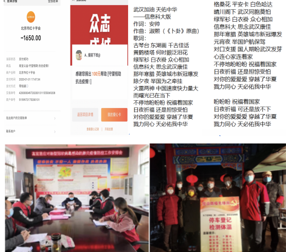 志愿活动方面,支部党员范菲云参加了家乡贵州省安顺市西秀区东屯乡高官村组织的抗疫情志愿活动,负责排查登记外来务工人员回家时间,制作和编辑相关文件、张贴标语,宣传不聚集、在家隔离的重要性。安晴同志带领同样在上大学的妹妹向家乡河北省保定市清苑区石桥乡平陵村防疫工作小组捐款,并加入了防疫工作志愿者的队伍,完成了包括街道巡逻,发放消毒液、喷壶等物资,向村民们耐心讲解做好宣传等多项工作。学生党支部通过正规官方渠道为武汉捐款,为此次疫情防控贡献了一份绵薄之力。支部同学王佳钰更是将暑假国庆群众游行方阵训练的补助悉数捐赠。