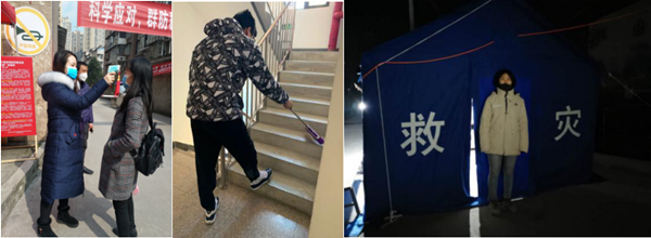 疫情期间,自动化学院学生党员响应学校疫情防控各项部署,发挥模范带头作用,志愿参与当地疫情防控工作。刘子锐同学在小区志愿参与单元楼楼道消毒工作;周彦君同学在小区临时党支部执勤,为出入人员测量体温,检查外来人员;宫光霖同学、乔梦然同学在村口站岗值班、排查来往人员......同时,学生党员们及时、正面、广泛地向身边同学宣传疫情防控相关法律法规、新冠病毒防控知识以及学校相关工作通知,并在同学中树立“个人责任”的典范,做到不离家、不返京、不返校。