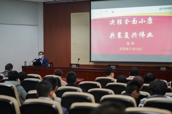 11月16日下午,副校长陈昕在健翔桥校区图书馆一层报告厅为计算机学院学生讲授“决胜全面小康,共襄复兴伟业”思政课。学院教师代表、学生党员、入党积极分子及团员代表等120余人参加了本次学习。