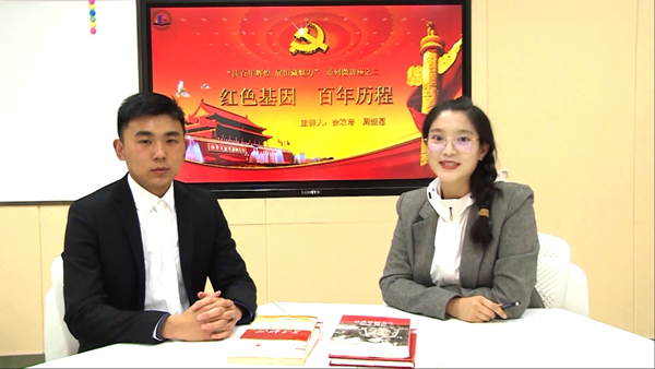 第二讲“红色基因 百年历程”,由图书馆图书阅览部的徐双培老师和有过参军经历的周新愿同学,用师生对话的形式为大家揭示我们党革命薪火永续、红色基因代代传的宝贵经验。同时还介绍了图书馆一些其它一些阅读服务活动。