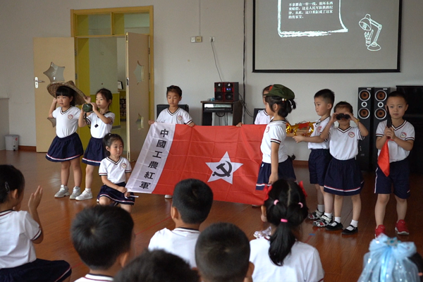 经由双方共同策划,传媒类第二党支部党员及预备党员宣讲组,以小组形式向幼儿园中班及大班学生进行党史红色宣讲。第一组以井冈山革命根据地为主题,以生动活泼的形式向小朋友们讲述了“中国革命的摇篮”井冈山革命根据地的故事,小朋友们回应积极,在宣讲结束后,为党支部讲解组表演了歌曲“强军战歌”,并举行了献花仪式。第二组讲述了延安保育院“丑妈妈”的事迹,小朋友们由此想到了自己的妈妈和老师,纷纷踊跃发言,宣讲结束后为宣讲组进行了名为“童心向党”的歌舞表演,并为讲解老师送上了党旗、五星红旗等一系列手工作品。