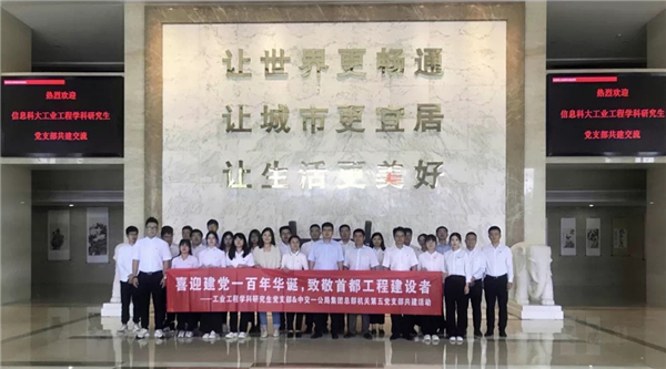 7月5日,工业工程学科研究生党支部与中交一公局集团总部机关第五党支部开展“喜迎建党一百年华诞,致敬首都工程建设者”共建活动。支部党员参观了庆祝建党百年主题展及企业发展历程和现有成就展,并交流了双方支部党建工作情况和党史学习教育情况。