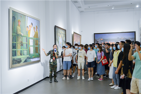 7月,2019级和2020级共计200余名研究生在学院党委副书记邵飞、团委书记韩聪钰的带领下,前往八一美术馆,参观“东风浩荡”—火箭军庆祝中国共产党成立100周年美术作品展。展览设置了“浴血荣光”“雷霆破晓”“逐梦九天”“崭新征程”四个篇章,共展出国画、油画、版画、色彩画、雕塑、装置、综合材料等艺术作品100件,每一件作品都记录着百年党史的珍贵瞬间,也记录着在中国共产党领导下,战略导弹部队历经岁月沧桑,精心铸件、潜心厉剑、善于亮剑,在强军路上谱写的热血战歌。