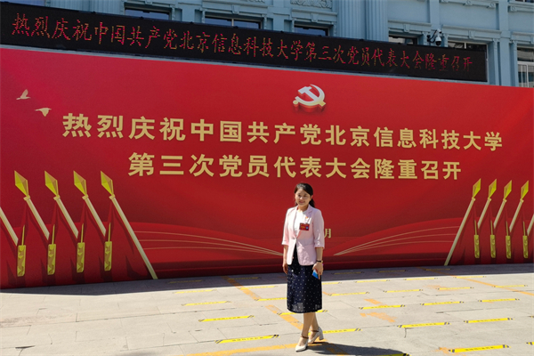 外国语学院教师 王瑛月 1999年我考入北京信息工程学院学习。22年弹指一挥间,我从学校的一名学生成为外国语学院一名行政工作者。学校滋养了我的成长,我也见证了学校的发展。党代会期间,作为代表我积极地发言,郑重地举手、庄严地投票,深感幸运、自豪与责任。王传亮书记在报告中总结了学校近年来取得的成绩、涌现出的先进人物,让我们倍受鼓舞。新校区即将启用,申博学科进入推荐名单,信息特色越发鲜明,发展方向更加清晰,也对我们信息科大人提出了更高的要求。作为学院一线行政工作人员,面对广大师生,我一定会按照学校的号召,“走在前列、干在实处、当好表率、立起标杆”,立足岗位把党的政策,学校的发展战略,学院的办学理念宣传好、落实好、践行好,建最好的大学,做最好的自己。