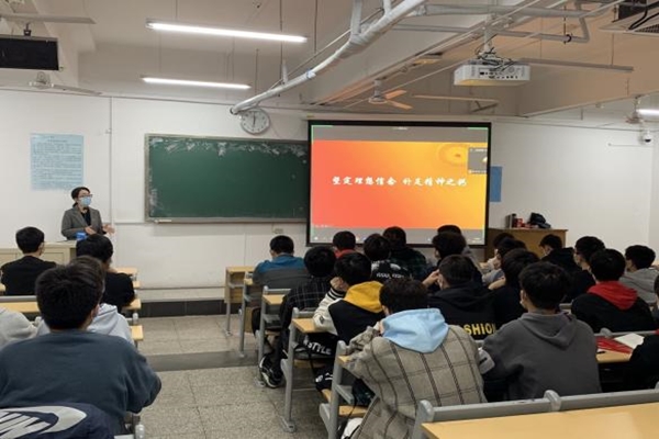 马克思主义学院吴迪老师为同学们讲授了《坚定理想信念,补足精神之钙》主题党课。吴迪以叙事方式形象生动地讲述了党的一大代表们不同的人生走向,讲述了共和国勋章获得者黄旭华、孙家栋的先进事迹,使同学们更加直观地认识到坚定理想信念的重要意义。