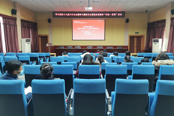 11月30日下午,马克思主义学院组织专兼职思政课教师、马克思主义理论专业研究生,在小营校区国际学术交流教室共同收看了由北京市委教育工委组织的“学习党的十九届六中全会精神专题报告会暨思政课教师‘同备一堂课’活动”直播。