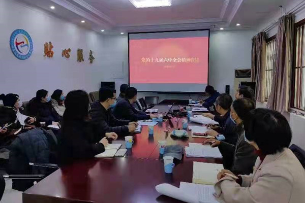 12月23日下午,学校副校长方德英在后勤处党员之家为后勤处教职工作党的十九届六中全会精神宣讲报告。后勤处领导班子成员、教职工代表参加了会议。会议由后勤党总支书记刘伟主持。