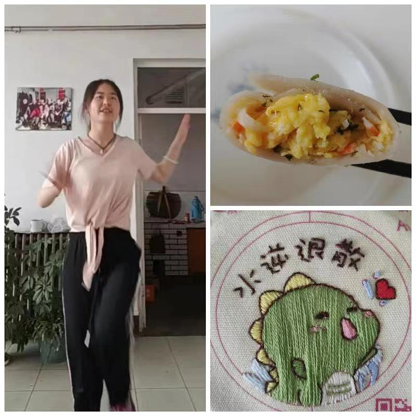 学院关心学生日常生活,鼓励同学们在线分享各类技能,居家从此“不孤单”。一道美食从食材到成品的华丽转身、一个手绣香囊出自“五大三粗”的男子汉、每天坚持锻炼成为了“刘畊宏女孩”、一个手绘瘦版“皮卡丘”的诞生……接地气的线上分享,让同学们有了挑战不可能,解锁新技能的勇气,也为平淡生活添加了更多滋味。不少陷入在线学习科研效率低、居家生活规划差等不良情绪体验的同学,通过参与日常生活互动转移了注意力,逐渐走出不平和心态误区,更好地投入到学习科研中。(供稿/图片:理学院 谢司 编辑:张帆 审核:杨静)
