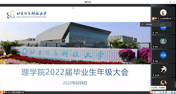6月8日下午,理学院在线上召开2022届毕业生教育大会,会议以“青春聚力正扬帆 强国有我新征程”为主题,围绕毕业生相关事宜进行工作部署。学院党委副书记谢司、组织员裴鹏程,2022届本硕全体毕业生参加会议。会议由理学院辅导员马川茼主持。
