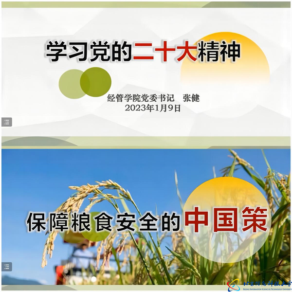 1月9日,张健在第七讲《学习党的二十大精神——保障粮食安全的中国策》中,以习近平总书记的重要讲话为基础,带领同学们学习我国粮食安全发展历程,分析我国粮食安全战略重点。她表示,我国受资源环境约束明显,贸易危机加剧,农产品进出口易被“卡脖子”,希望同学们从自己做起,切实贯彻落实二十大精神,共同筑牢我国粮食安全之基。
