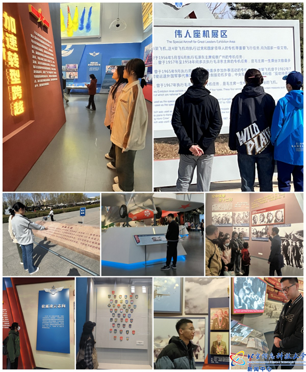 同时,党建辅导员王亚娜带领126名本科生入党积极分子参观了中国航空博物馆。同学们通过观看曾在空中翱翔战斗的展品,瞻仰承载空军精神的英雄墙,了解人民空军的光辉历程和辉煌成就,缅怀先烈,致敬英雄。