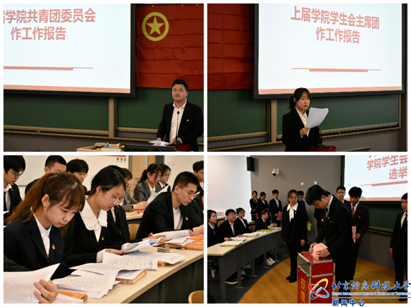 张文兵、计算机学院学生会执行主席都家惠分别作了题为《高举团旗跟党走,砥砺奋进新征程,为学院高质量发展贡献青春、智慧和力量》《不忘初心,自信自强,踔厉奋发,勇毅前行,为筑梦学生发展而不懈奋斗》的工作报告。会上宣读讨论了大会的选举办法,推选监票人、计票人,与会代表现场进行无记名投票。最终大会通过选举产生了新一届共青团计算机学院委员会委员5人,新一届学院学生会主席团3人。
