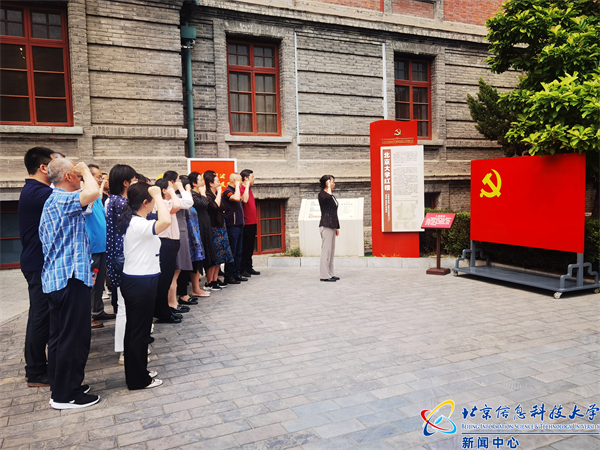 在中国共产党早期北京革命活动纪念馆前,陈清华带领全体党员同志面向党旗庄严宣誓,重温入党誓词,感悟初心使命,表达对党的坚定信念和无限忠诚。随后在讲解员的引导下,大家步入纪念馆开启 “光辉伟业 红色序章——北大红楼与中国共产党早期北京革命活动主题展” 的红色参观之旅。展览将历史场景复原与专题陈列展示相结合,共有分布在北大红楼一、二、三层的67间展厅。展厅中珍藏的真实影像资料、原始手稿、书信报刊以及旧址复原场景生动呈现了中国共产党创建时期北京革命活动的光辉历史,大家身临其境般重温那段救国救民、激情燃烧的岁月,深刻感悟革命先辈前赴后继追求真理的爱国情怀和革命精神,深刻体会作为一名共产党员在新时代新征程所肩负的时代使命和历史责任。