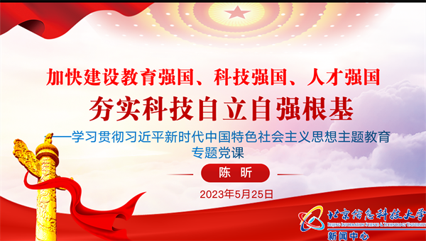 按照主题教育工作部署安排,5月22日下午,校党委常委、副校长陈昕为科技处党支部全体党员和教职工讲授题为“加快建设教育强国、科技强国、人才强国,夯实科技自立自强根基”的主题党课。
