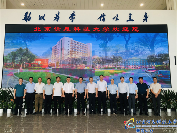 座谈前,副校长方德英热情接待了陈德康一行,对他们莅临学校调研交流表示欢迎,希望京外地方政府相关单位能结合我校办学在信息特色、行业特色、军工特色的科技创新优势,加强加深校地合作。