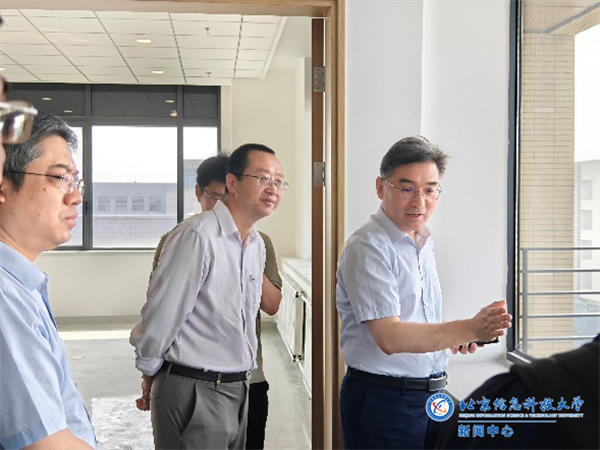在工学楼,陈昕一行实地查看并详细询问楼宇交付进展、空间布局、使用安排及搬迁保障等情况。现场就机电、光电、自动化学院搬迁过程中遇到的问题与相关部门进行深入的沟通与交流。