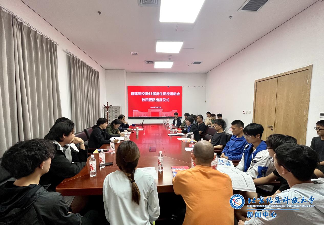 5月12日,学校召开首都高校第63届学生田径运动会(以下简称“第63届首高会”)赛前动员会。校党委常委、副校长王兴芬参加会议并作动员讲话,为即将出征的校田径队加油助威、授旗壮行。会议由体育部主任兼直属党支部书记邱东主持。体育部副主任刘守君、校田径队全体教练员及运动员参会。