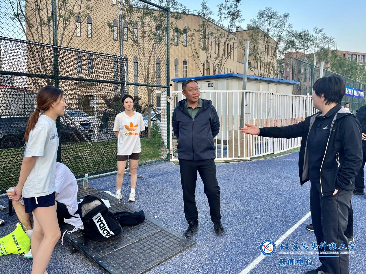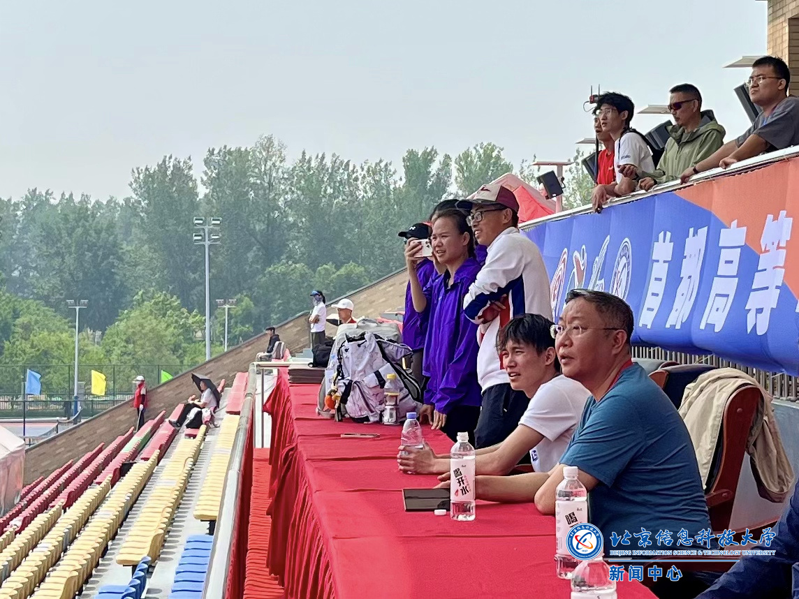这些优异成绩的取得,既离不开运动员们平日里的刻苦训练,也得益于教练团队的悉心指导以及学校的大力支持。赛前,校党委书记解江凌来到田径队训练场地,亲切看望备战师生。他认真观看队员们的训练,详细询问训练进度与队员状态。并对队员们日复一日的刻苦训练给予高度肯定,鼓励队员们要坚定信心、轻装上阵,在赛场上充分发挥出自身水平,展现出信息科大学子的拼搏精神与青春风采。比赛过程中,解江凌来到赛场与师生们一同观赛,不仅为本校田径队队员呐喊助威,也为赛场上拼搏的首都高校健儿们加油鼓劲,现场气氛热烈非凡。