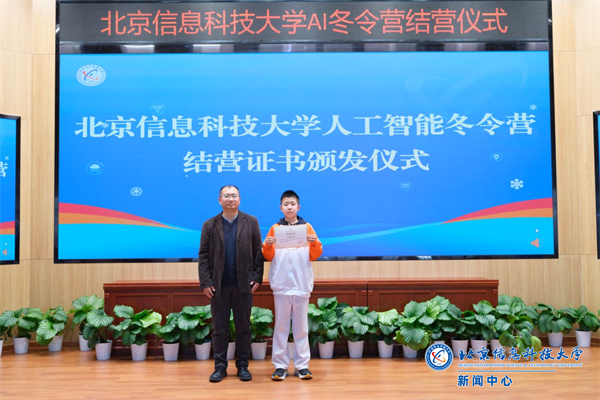 1月16日下午,为期三天的北京信息科技大学人工智能冬令营在沙河校区立德楼603报告厅举办结营仪式。